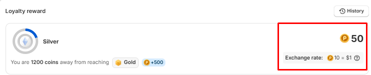Here you can see your current tier, total Pie Points (🍰), and upcoming challenges. Complete these tasks to earn more points and unlock bigger rewards. Here you can see how many Pie Points (🍰) you have and their exchange rate. For example, 10 Pie Points = $1 in rewards. With 50 points, you already have $5 worth of value to redeem.