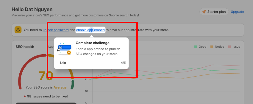 ☘️ Challenge integration Pro: Enable app embed to activate features