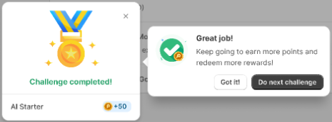 Each time you complete a challenge, you will receive the corresponding points as shown in the image