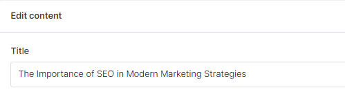 Next, let's go to our app's SEO Tags > AI Generation > Blog Post and manually add the keyword to meta title.&#x20;