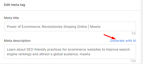 Note: You can also use [AI tool](https://docs.searchpie.io/app-features/seo-tags-and-content/seo-tags/ai-generation) your meta description, which saves much time & effort