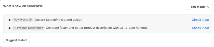 You can stay updated with the latest improvements and features on SearchPie to make the most out of your SEO experience. Besides, you can suggest any precious idea for us to develop features for the app.&#x20;