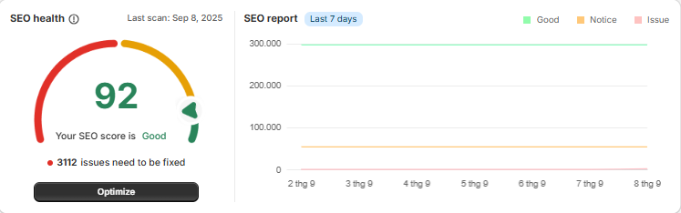 To start optimizing SEO, please click the **Optimize** button, then you'll go to SEO report to see the SEO performance of your Homepage.