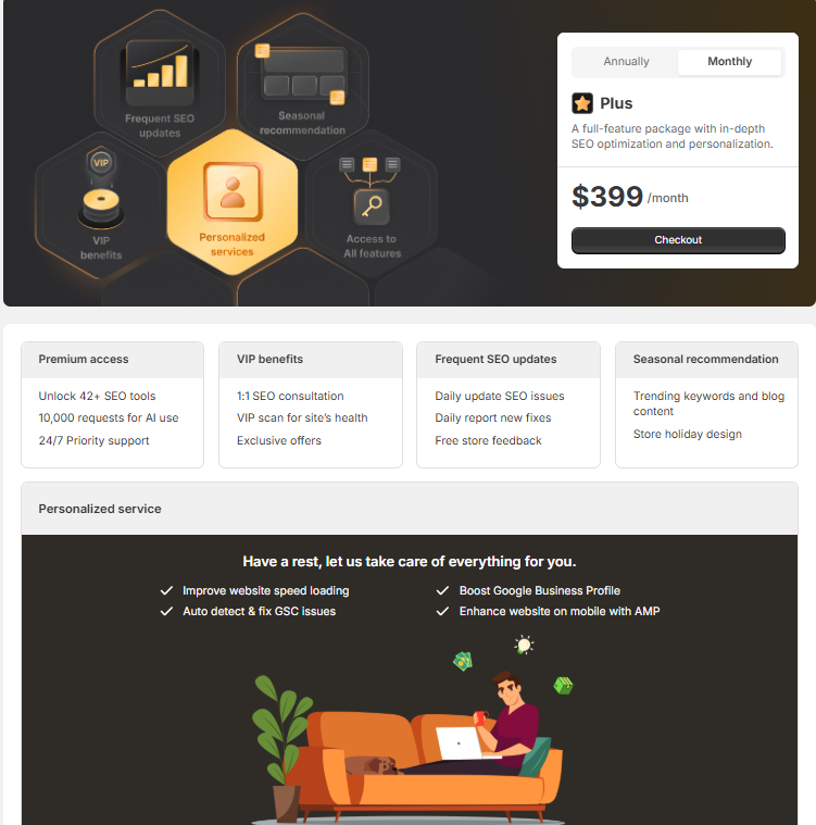 Plus Plan is a recurring SEO plan in our app, with the price of $399/month.